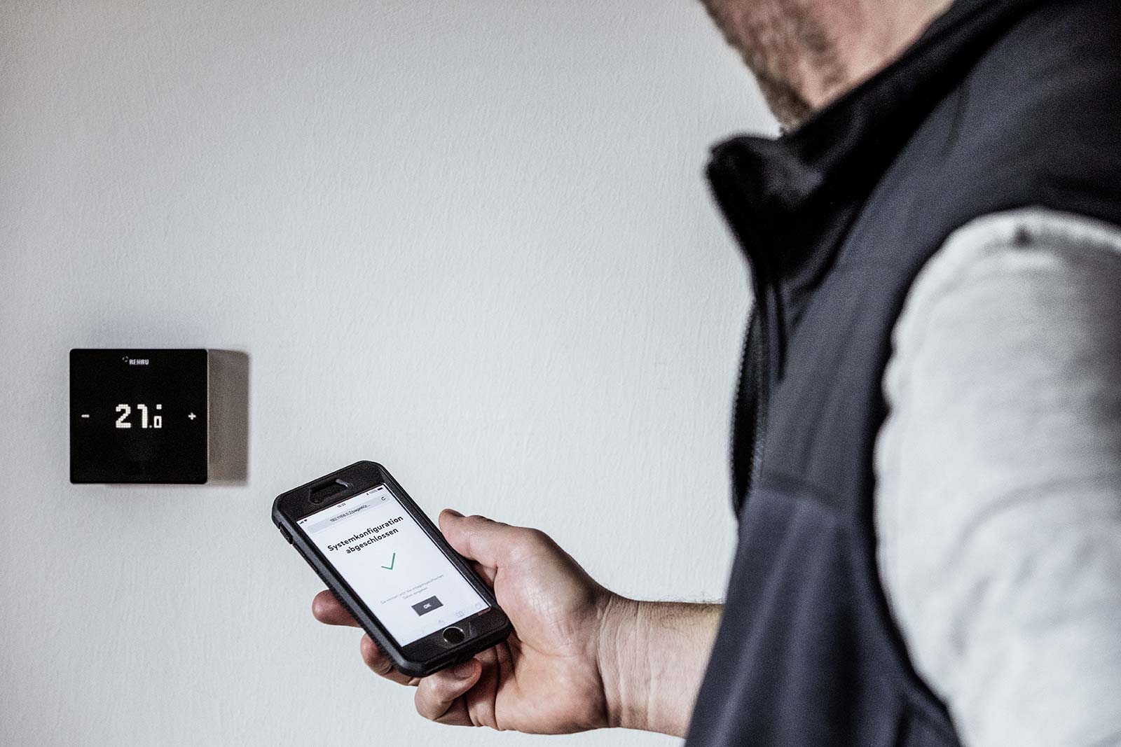 Dank integrierter Geofencing-Technologie weiß NEA SMART 2.0, ob und wann sich Bewohner zuhause befinden und passt sein Heizverhalten entsprechend an. Auf diese Weise lässt sich wertvolle Heizenergie sparen. Zudem kann eine REHAU Flächenheizung mit einer Vielzahl an regenerativen Energiequellen kombiniert werden, etwa Solarthermie oder Geothermie. Dies wird – ebenso wie die Regelung – finanziell gefördert, beispielsweise durch die KfW und andere Einrichtungen.